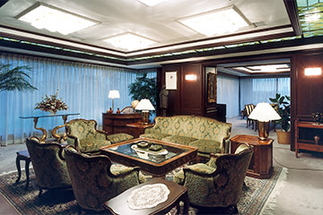 石張りのエントランスまわりと総タイル張りの建物で、どっしりと重量感のある高級住宅です。